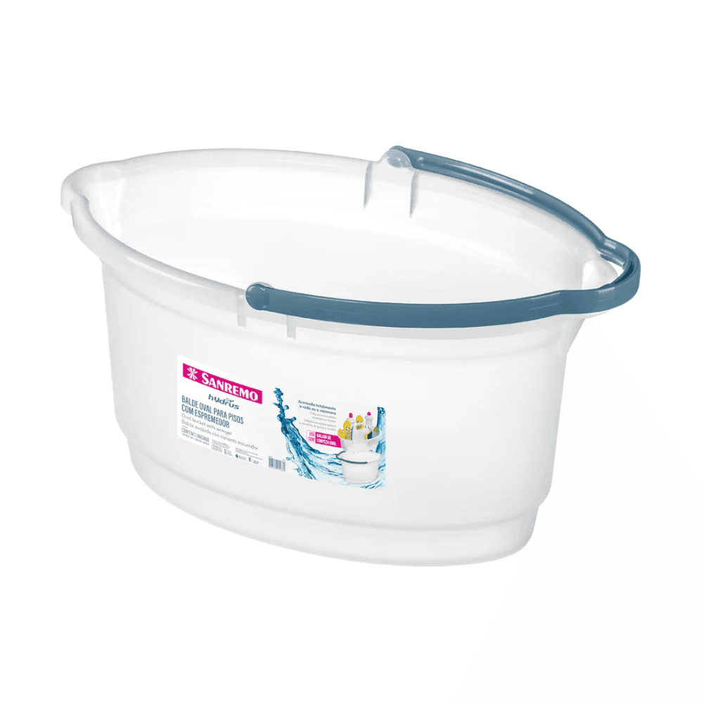 Balde com design oval: permite a imersão total de rodos e forma conjunto com balaio oval de limpeza Sanremo. Além disso, possui alça larga que não machuca as mãos, bico direcionar de água e escala medidora de VOLUME DA CAIXA. É a facilidade que você merece na rotina diária da sua lavanderia. • Leve e resistente. • Permite a imersão total de rodos e esponjas. • Forma conjunto com balaio de limpeza: vendido separadamente. • Bico direcionador de água e escala medidora.