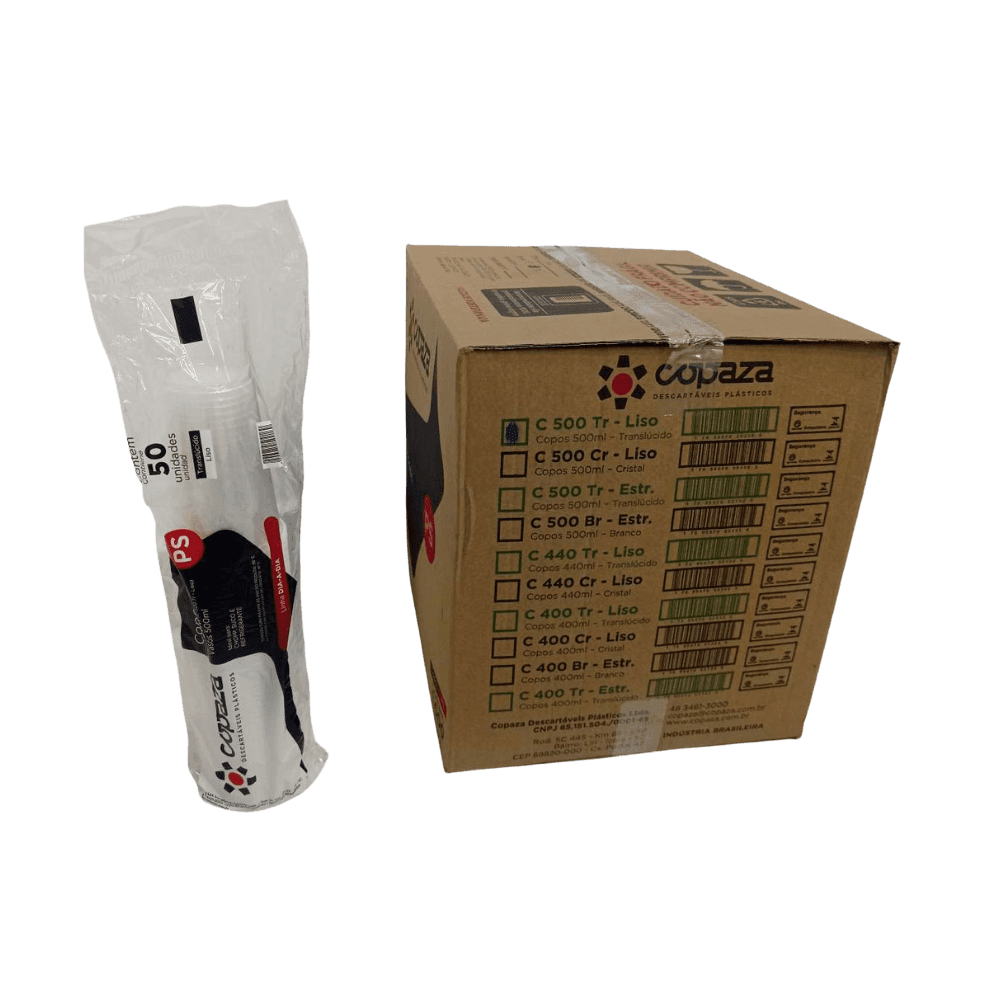 Copo 500ml Translúcido Liso PS Copaza 1.000 unidades a granel em São Paulo você encontra na Casa Limpa, Rua Apinajés 1484, bairro Sumaré, São Paulo SP.
