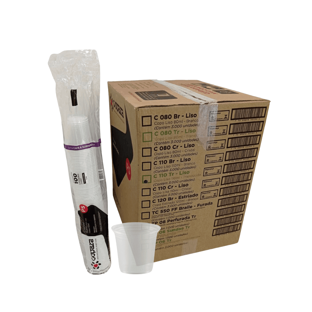 Copo Descartável 110 ml Translúcido Liso PS Copaza 3.000 unidades a granel em São Paulo você encontra na Casa Limpa, Rua Apinajés 1484, bairro Sumaré, São Paulo SP.