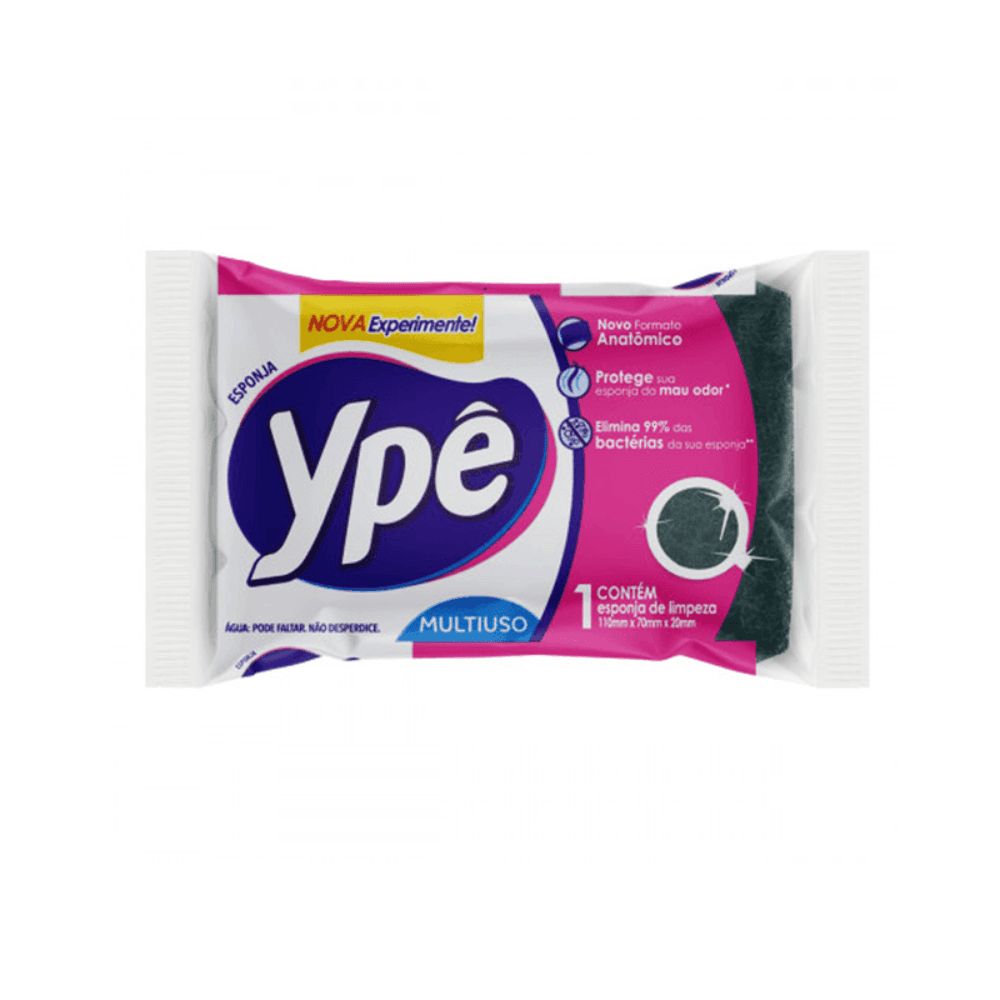 A esponja Ypê Multiuso é eficiente, resistente e mantém a qualidade mesmo depois de várias lavagens. Dimensões: 110 mm x 70 mm x 23 mm