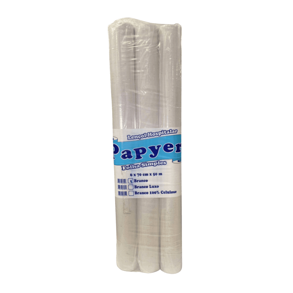 Lençol Hospitalar de Papel Branco 70x50 Papyer Fardo com 6 rolos a granel em São Paulo você encontra na Casa Limpa, Rua Apinajés 1484, bairro Sumaré, São Paulo SP.