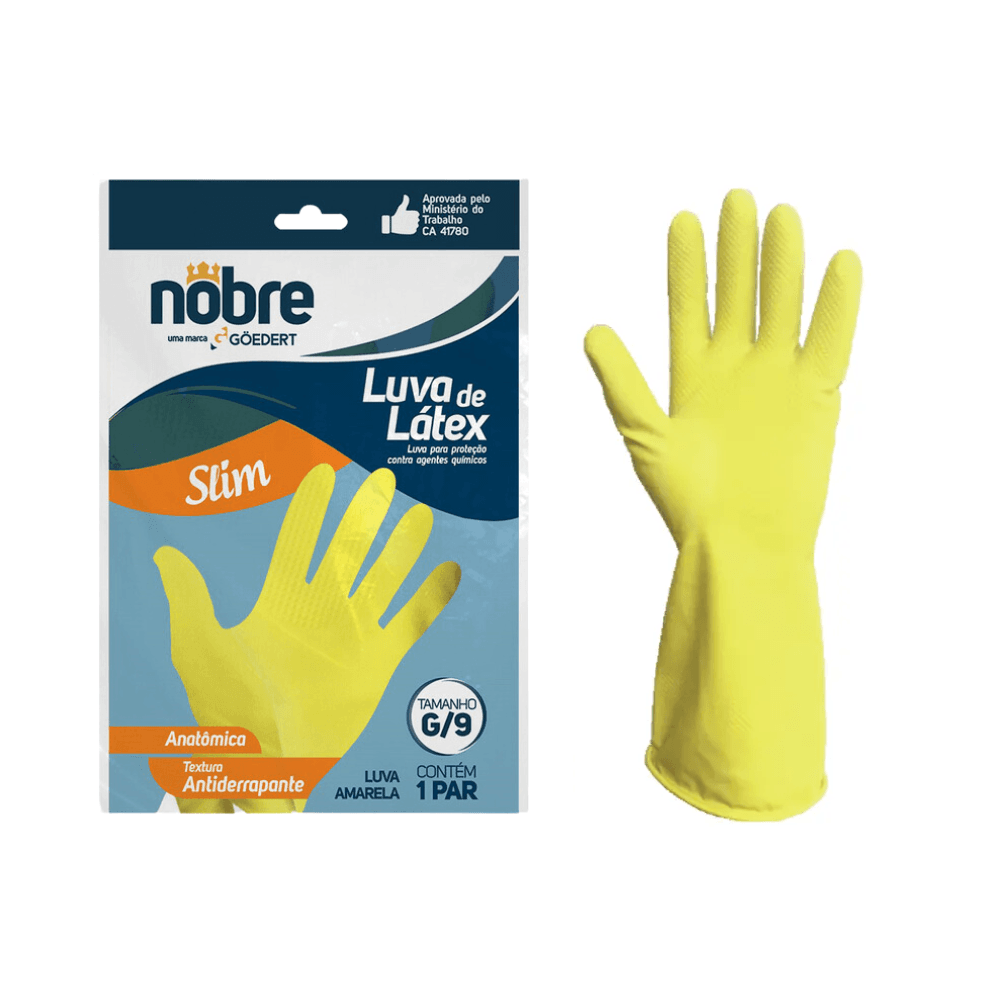 Luva de Látex Amarela G Anatômica Nobre CA 41780 Proteção Química e Mecânica