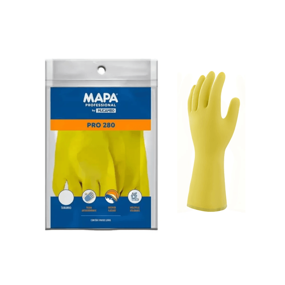 A Luva Mucambo PRO 280 oferece conforto, destreza e precisão para as tarefas de manutenção, conservação e limpeza. Características Principais: - Conforto: Proporciona excelente destreza devido à flexibilidade do látex natural. O forro de algodão flocado oferece mais conforto e absorção de perspiração. - Durabilidade: Possui boa resistência química, garantindo longa vida útil. - Produtividade: Design ergonômico reduzindo a fadiga nas mãos. A flexibilidade do látex natural proporciona excelente destreza. - Aplicações Específicas: Indicado para uma variedade de setores industriais e de serviços públicos. Aplicações por Setor: - Indústria Mecânica - Serviços Públicos (Limpeza) - Serviços Públicos (Coleta e Processamento de Lixo) - Indústria da Construção (Pedreiro / Gesseiro) - Indústria da Construção (Pintores / Decoradores) - Outras Indústrias Utilizações Típicas: - Manuseio de Detergentes Domésticos - Coleta de Lixo - Limpeza Industrial - Manutenção Industrial - Montagem de Pequenas Peças, Sem Óleo ou Graxa - Processamento e Triagem de Resíduos - Preparação e Aplicação de Argamassa e Cimento - Reboque - Pintura