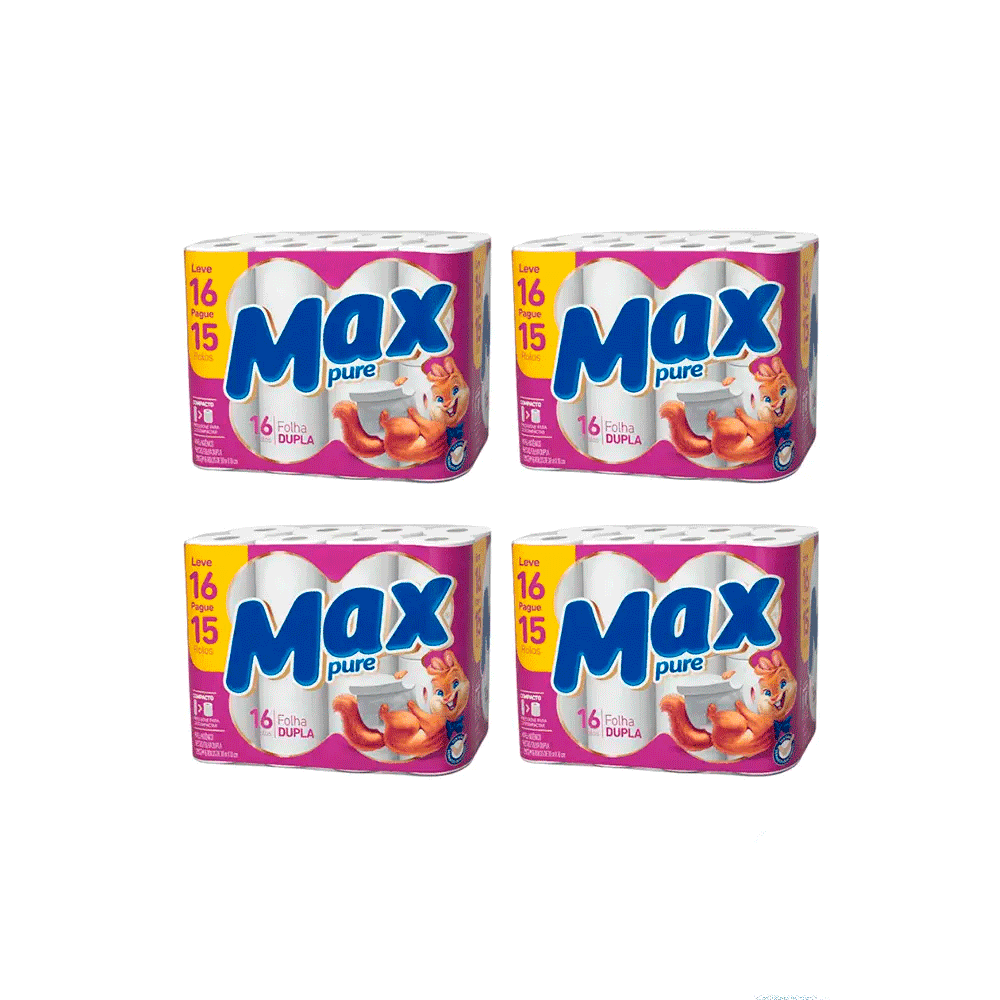 Papel Higiênico Folha Dupla Max Pure 4 Pacotes com 16 rolos de 30m