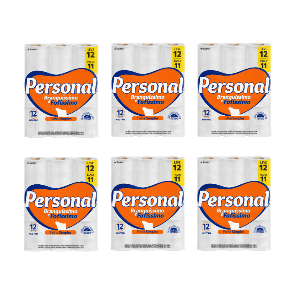 Papel Higiênico Folha Simples Personal 6 pacotes contendo 12 rolos com 30m