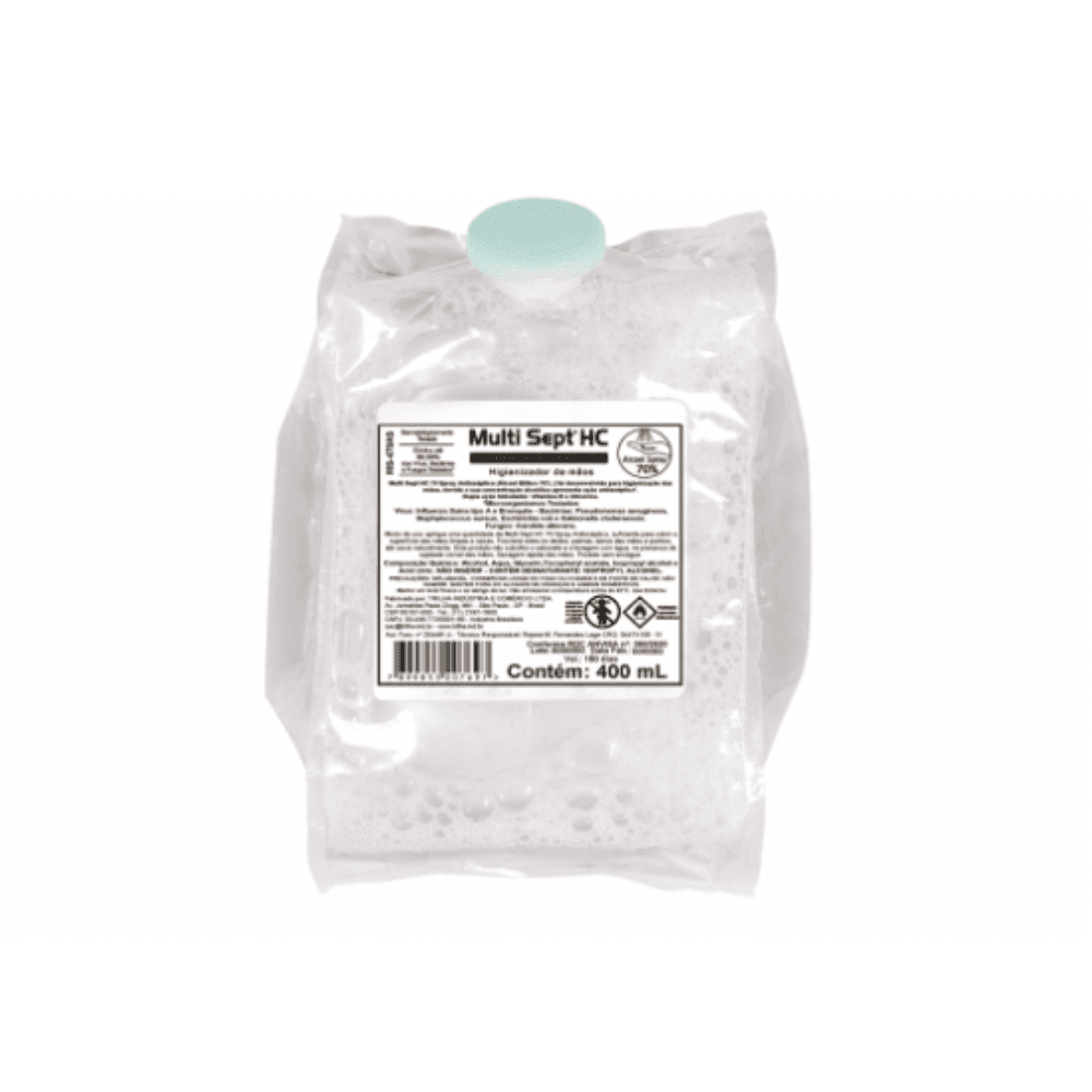 MULTI SEPT HC 70 SPRAY ANTISSÉPTICO foi desenvolvido para higienização das mãos, sua concentração de ÁLCOOL ETÍLICO 70%, apresenta ação antisséptica*. Com dupla ação hidratante: Vitamina E e Glicerina, proporciona uma eficaz hidratação na pele, auxiliando na adesão à regra de uso. Permite a higienização das mãos sem precisar enxaguar e com rápida secagem. Perfeito para locais onde o uso constante e repetido se faz necessário. APLICAÇÃO Sua aplicação é indicada em qualquer estabelecimento industrial ou institucional que exige uma boa assepsia instantânea das mãos, tais como: estabelecimentos da área da saúde, hospitais, clínicas médicas e veterinárias, laboratórios, indústrias alimentícias, catering, cozinhas industriais, restaurantes, academias e etc., evitando as infecções cruzadas. Para uso constante e repetido. MODO DE USAR Aplique nas mãos uma quantidade de Multi Sept HC 70 Spray Antisséptico, suficiente para cobrir a superfície das mãos limpas e secas, friccione as palmas das mãos entre si, entrelaçando os dedos, dorso das mãos, polegares, friccione as digitais e unhas na palma da mão e faça movimentos circulares nos punhos, friccione até secar naturalmente. Este produto não substitui o sabonete e a lavagem com água, na presença de sujidade visível das mãos. COMPOSIÇÃO Aqua, Alcohol, Isopropyl alcohol, Glycerin, Tocopheryl acetate e Citric acid, Tipo de Laudo: HRIPT Teste realizado: Avaliação Dermatológica da Irritabilidade Dérmica Primária, Acumulada e Sensibilização – Testado em Humanos. Teste realizado em 60 pessoas com idades entre 18 a 56 anos, do sexo Masculino e Feminino com Fototipos I a IV. Tipo de Laudo: Laudo de Eficácia: Vírus Eficiente em tempo de contato de 15 segundos. Teste realizado: Influenza Suína Tipo A - Bronquite Tipo de Laudo: Laudo de Eficácia: Avaliação Bactericida na Área Médica Eficiente em tempo de contato de 15 segundos. Teste realizado: - Staphylococcus aureus - Salmonella choleraeesuis - Escherichia coli - Pseudomonas aeruginosa Tipo de Laudo: Laudo de Eficácia: Avaliação Fungicida na Área Médica Eficiente em tempo de contato de 15 segundos. Teste realizado: - Candida albicans PRECAUÇÕES INFLAMÁVEL. CONSERVAR LONGE DO FOGO OU CHAMAS E DE FONTES DE CALOR. MANTENHA FORA DO ALCANCE DE CRIANÇAS E ANIMAIS DOMÉSTICOS. Manter em local fresco e ao abrigo da luz Não armazenar em temperaturas acima de 43°C. Uso externo NÂO INGERIR: CONTÉM DESNATURANTE: ISOPROPYL ALCOHOL