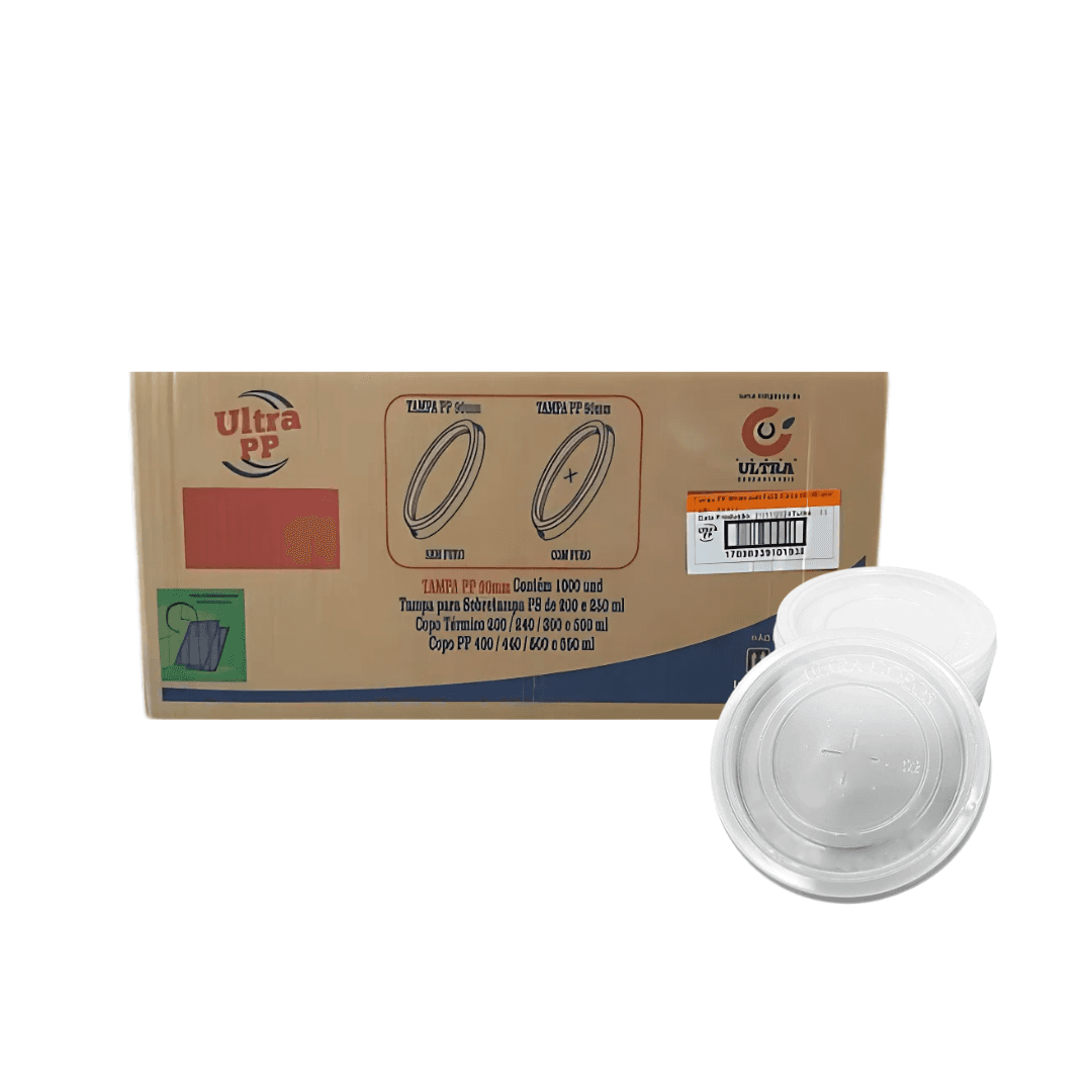Tampa para Pote e Copo com furo central Ultra com 50 unidades. As tampas da Ultra servem para o fechamento de copos/potes fazendo com o que o mantimento armazenado não vaze e se mantenha na temperatura desejada.