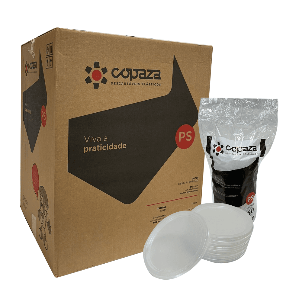 As tampas Copaza são ideais para o fechamento adequado de copos e potes, garantindo a conservação e temperatura dos alimentos. Muito utilizado em lanchonetes, fastfoods e delivery. Compatível com o copo: 1.000ml Compatível com os Potes: Pote P-09 Tr-liso 500ml Pote P-09 Tr- liso 600ml Pote P-09 combate com relevo Tr-400ml pote P-09 combate com relevo Tr-500ml Pote P-16 Tr-liso Tr-340ml